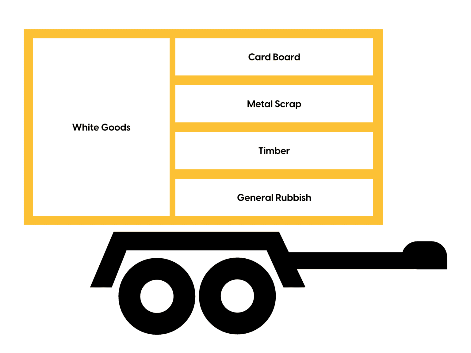If you have any bulky Wood, Lounges, Fridges or Freezers, Washing Machines or Dryers please load in first. Bulky items can be stood on their ends & stick up out of the bin. Your driver will always secure & tie down your load & make it safe for towing. Please try to load any loose scrap metal on top of your bulky items for easy sorting later at the tip.